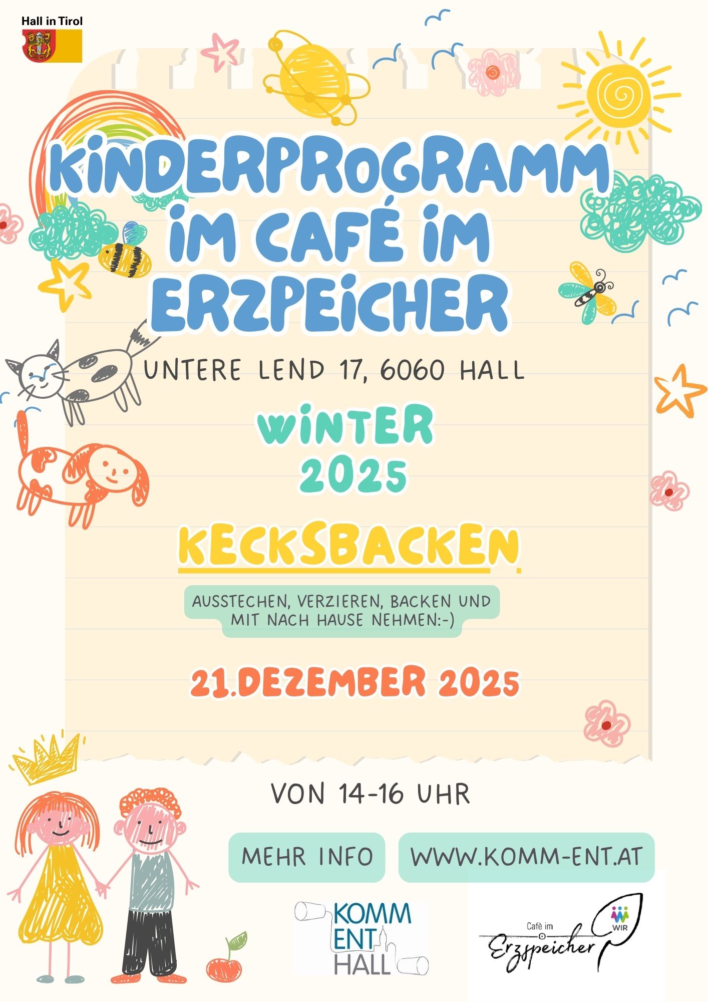 Wir backen gemeinsam mit dem Café im Erzspeicher wieder duftende Kekse. Wir bringen den Teig und alle Kinder können dann mit bunten Ausstechern ihre eigenen Kekse formen, mit Süßem und Schokolade verzieren und dann Dominik vom Erzspeicher zum backen geben. Danach kann gleich ein wenig genascht und der Rest in kleinen Papiersäckchen mit nach Hause genommen werden.