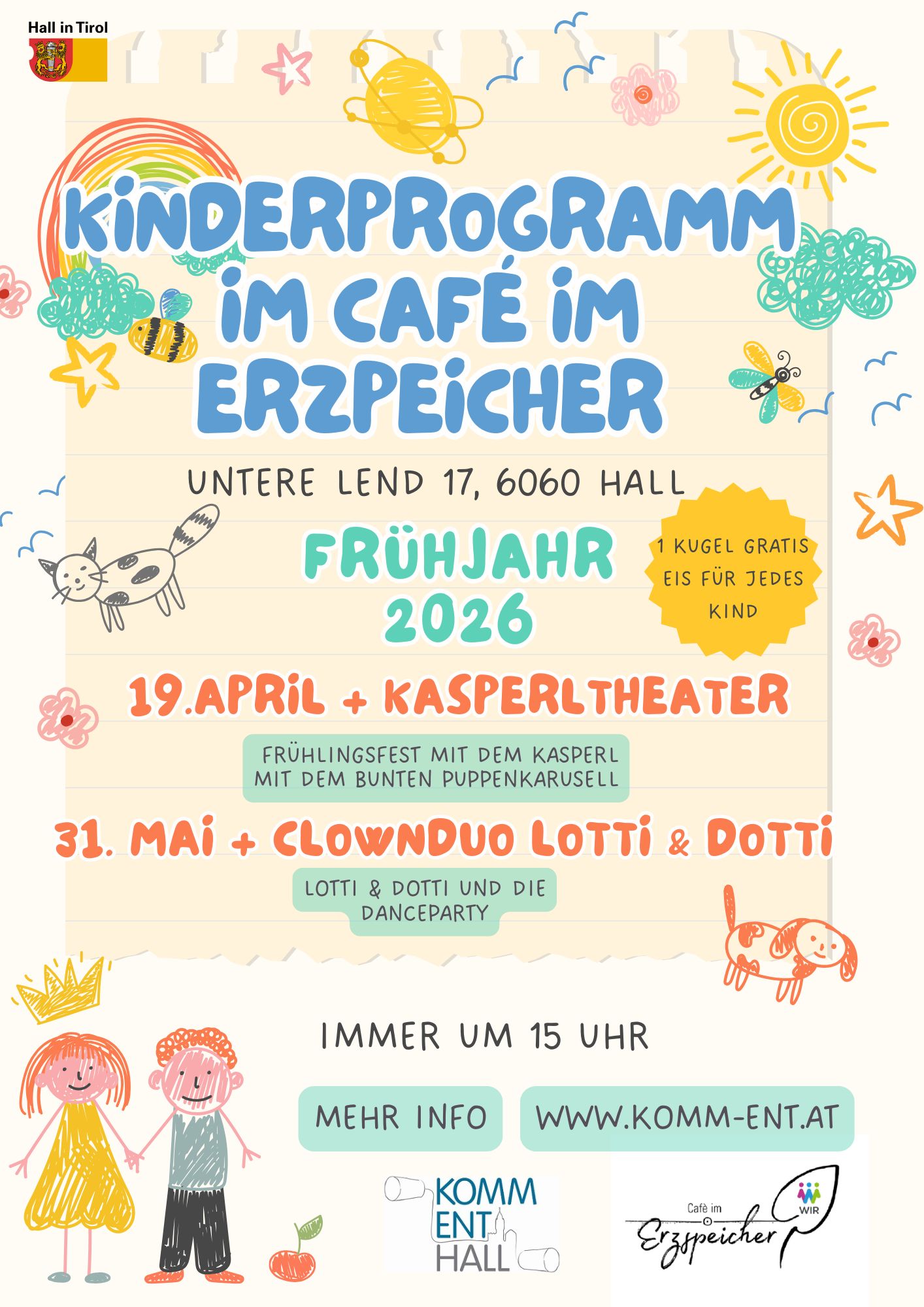 In den Umfragen, die wir über das Jahr persönlich und bei den Stadtteilfesten in der Lend machen, wurde der Wunsch nach mehr Angeboten für Kinder in der Unteren Lend oftmals erwähnt. Daher freut es uns sehr im Herbst 2025 an 3 Sonntagen in Kooperation mit dem Café im Erzspeicher ein buntes Kinderprogramm anzubieten. Start ist immer um 15 Uhr.